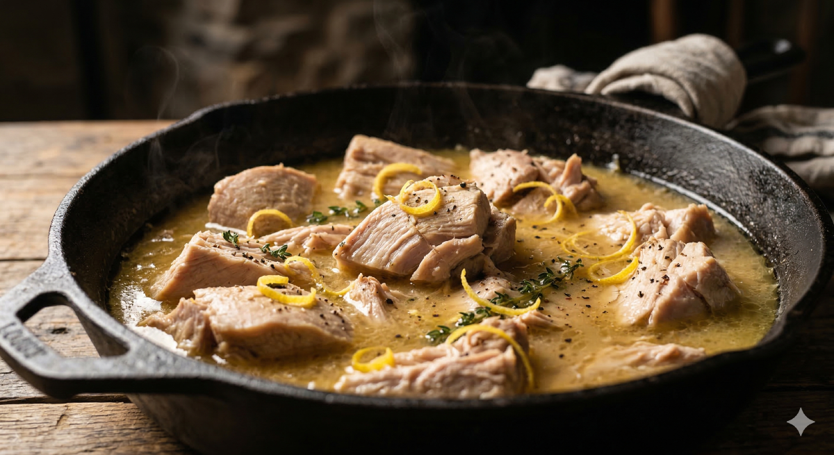 Kombu dashi as the braising liquid provides iodine and natural glutamates. The turkey absorbs these during the braise and continues absorbing during storage, which is why the meat tastes better on day two than day one.